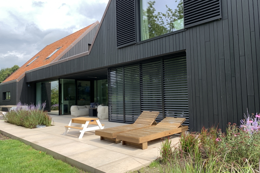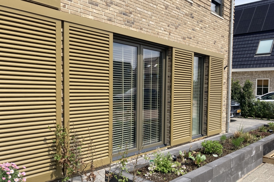 Onlangs hebben wij deze prachtige villa voorzien van aluminium schuifluiken. Bijzonder aan deze schuifluiken is de poedercoating. Via een speciaal proces is het aluminium voorzien van een houtdecor.